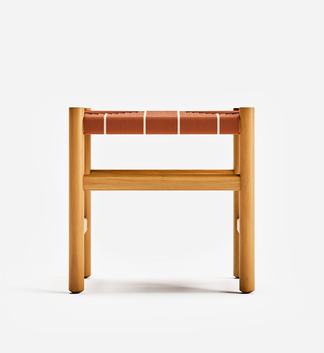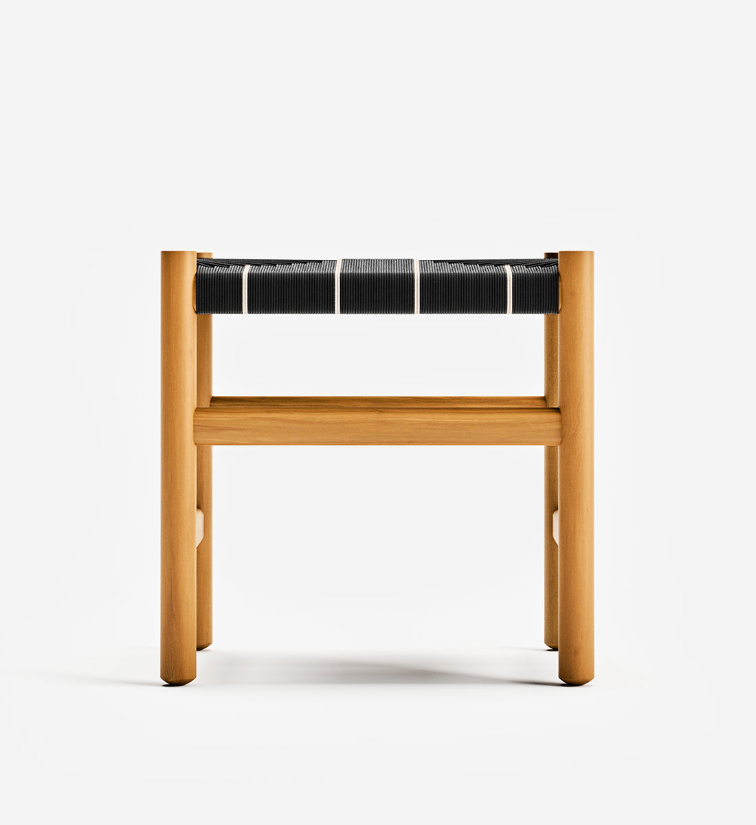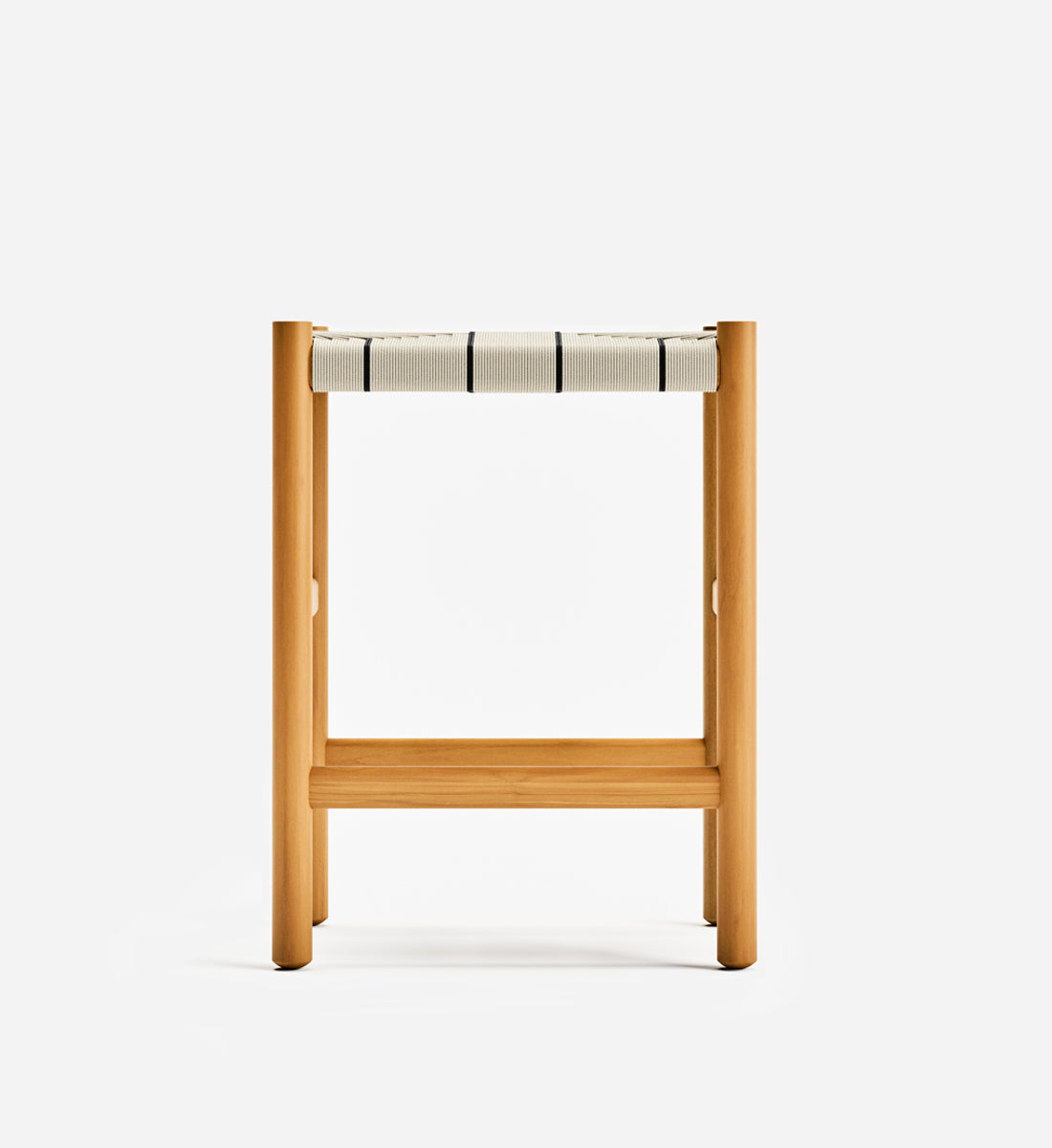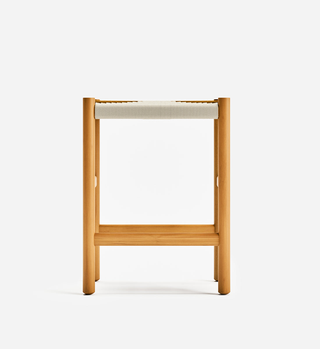 Made to be versatile. The Zapatera stool is a solid teak piece that moves in and out of spaces.