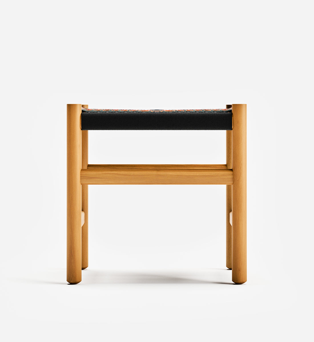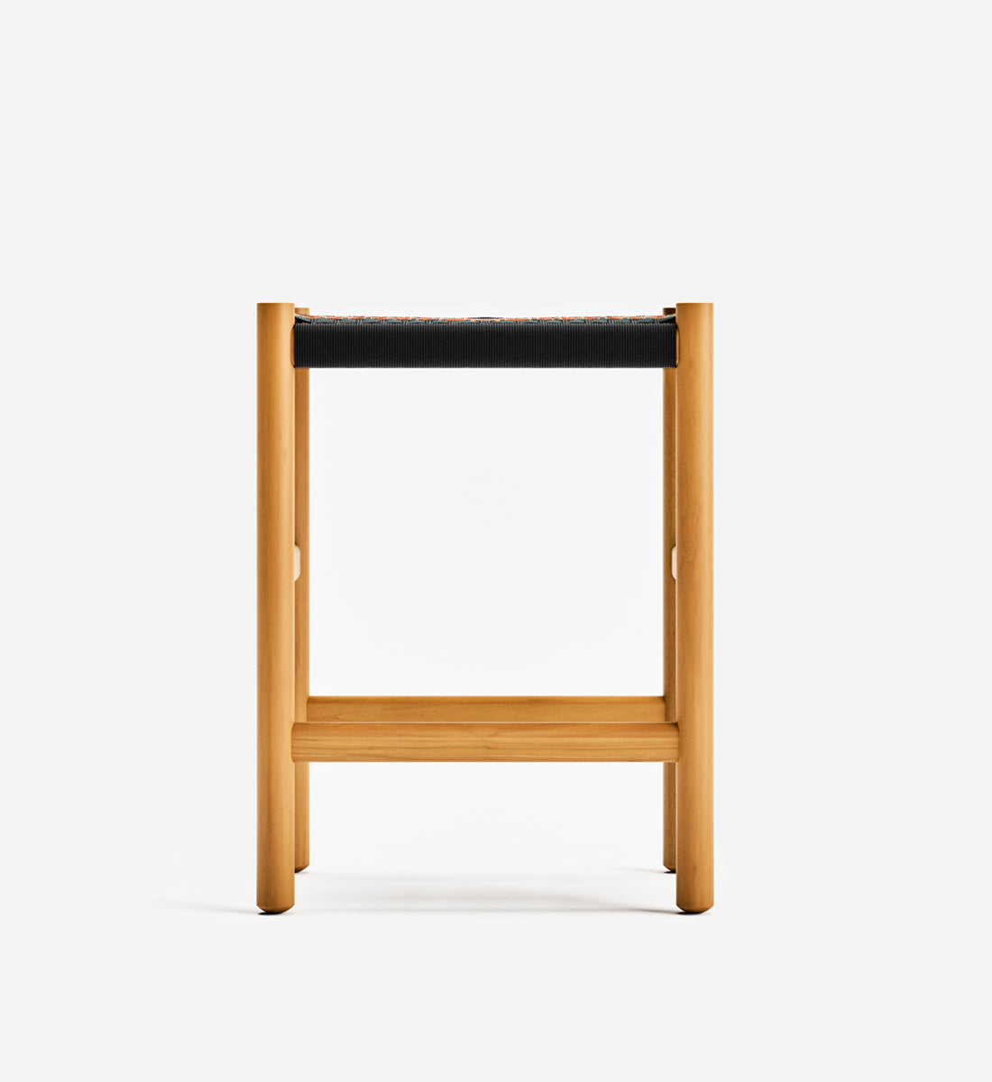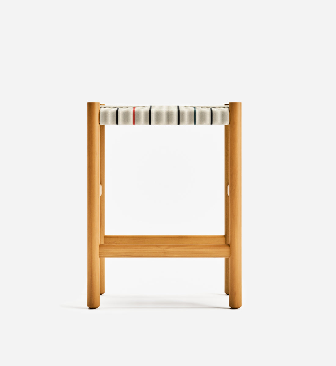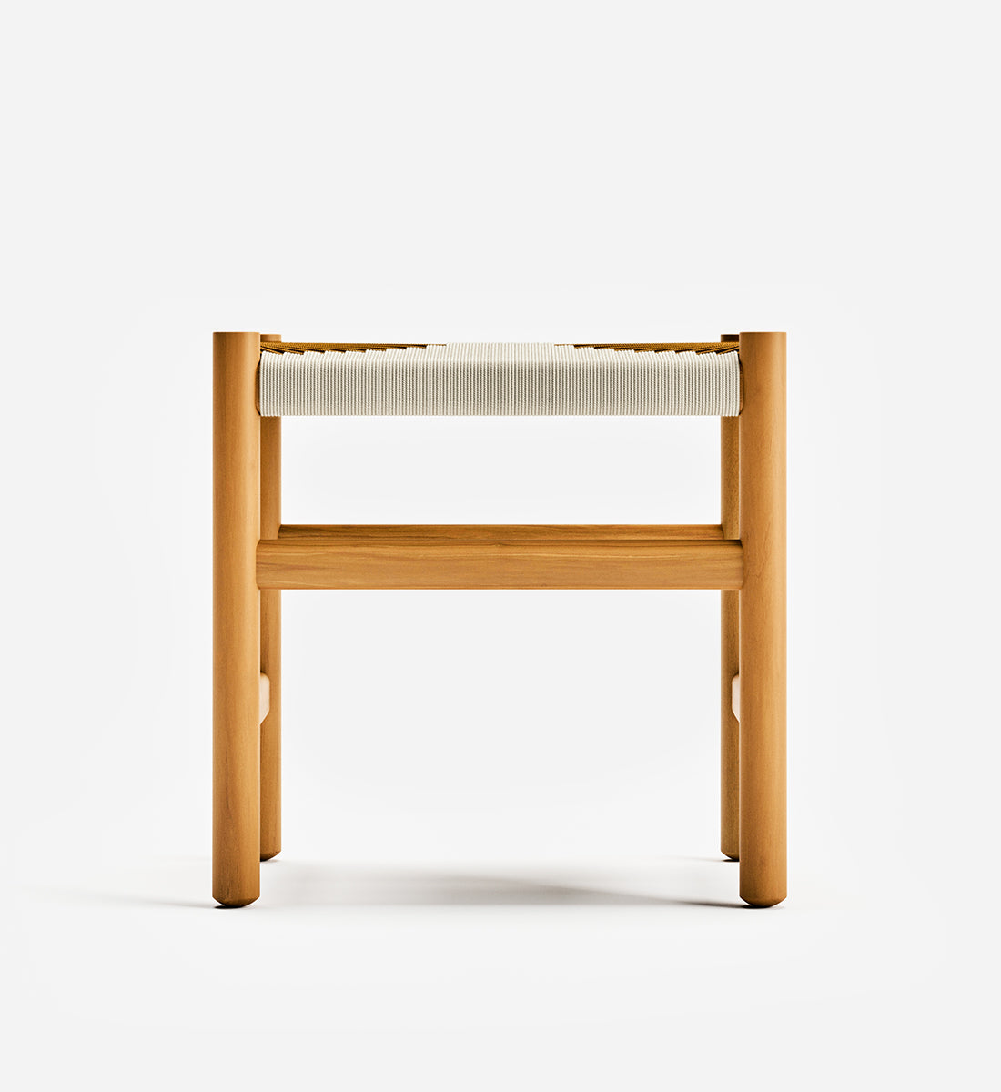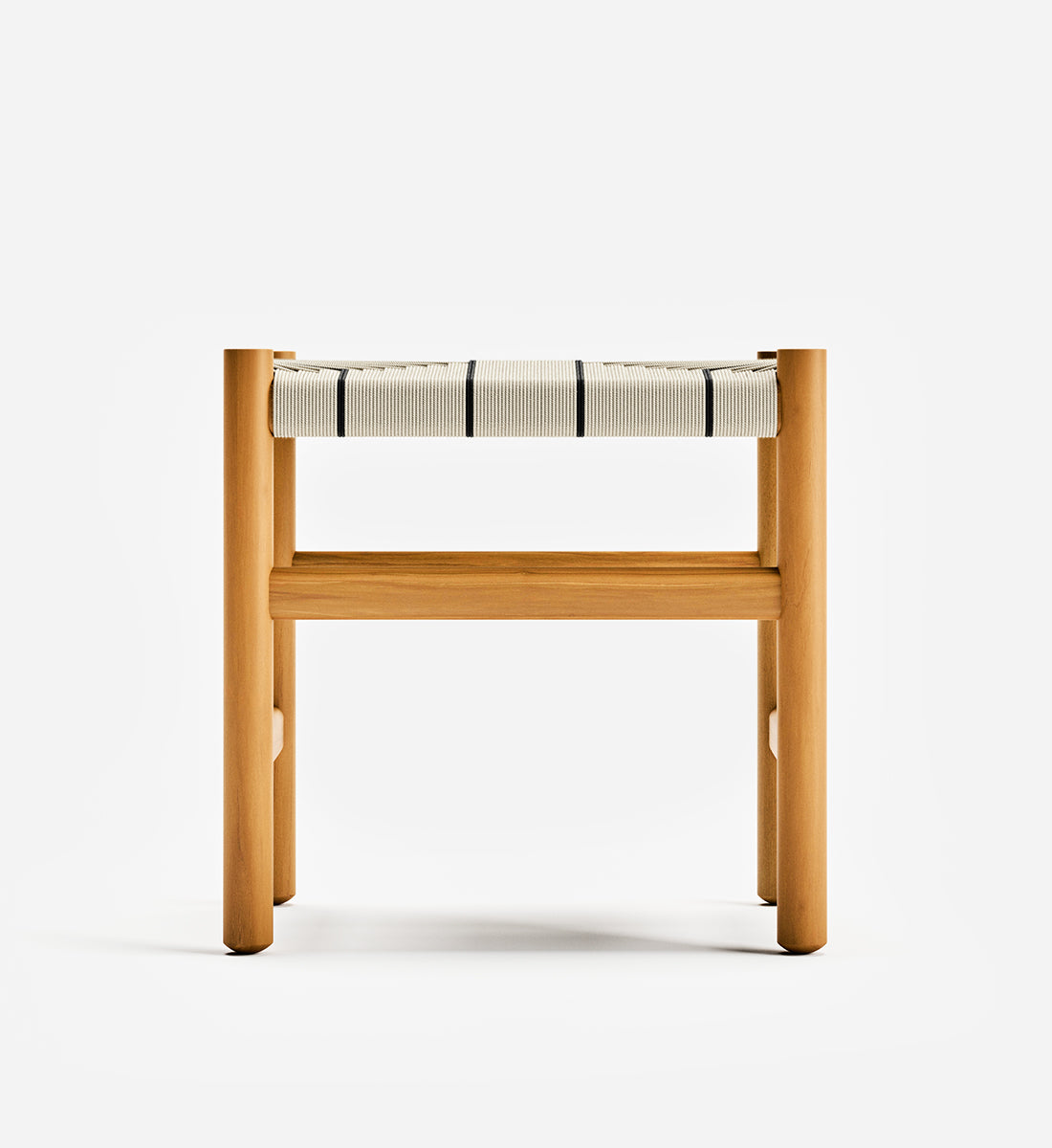 Made to be versatile. The Zapatera stool is a solid teak piece that moves in and out of spaces.