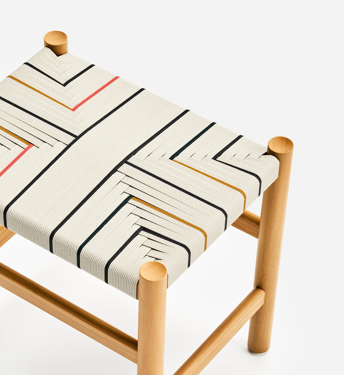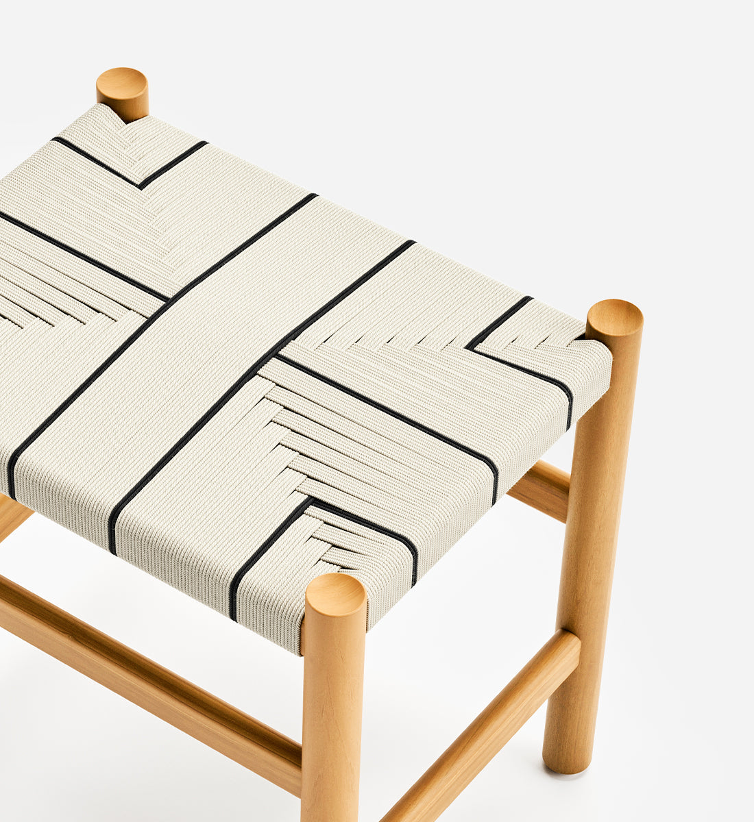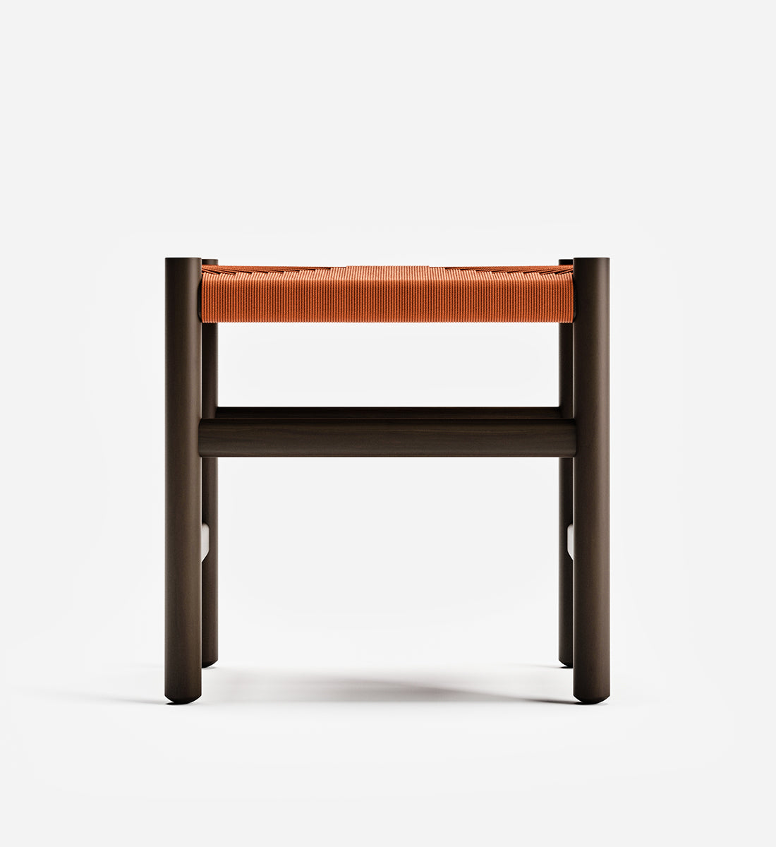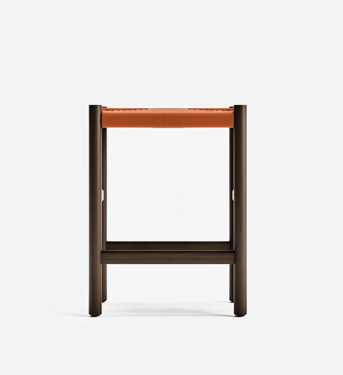 Made to be versatile. The Zapatera stool is a solid teak piece that moves in and out of spaces.