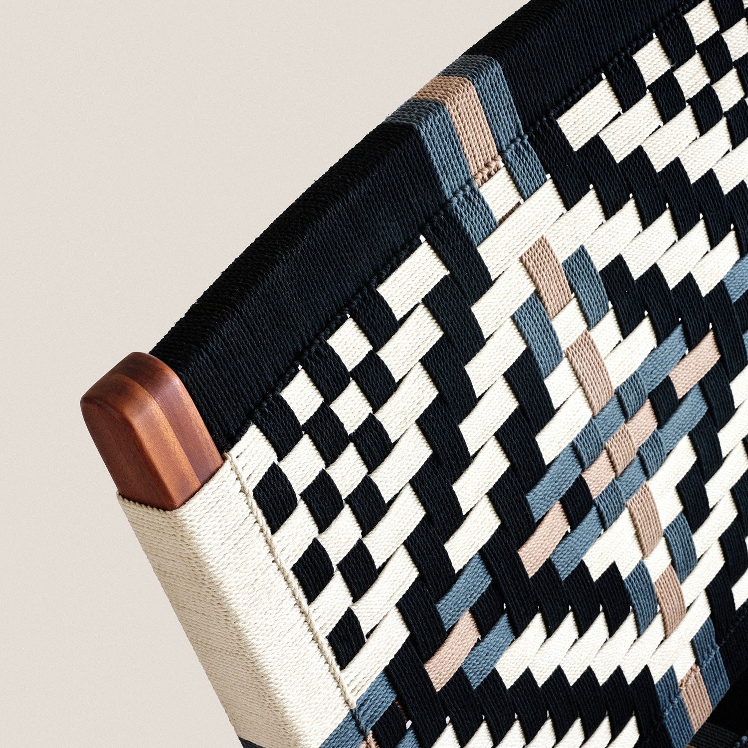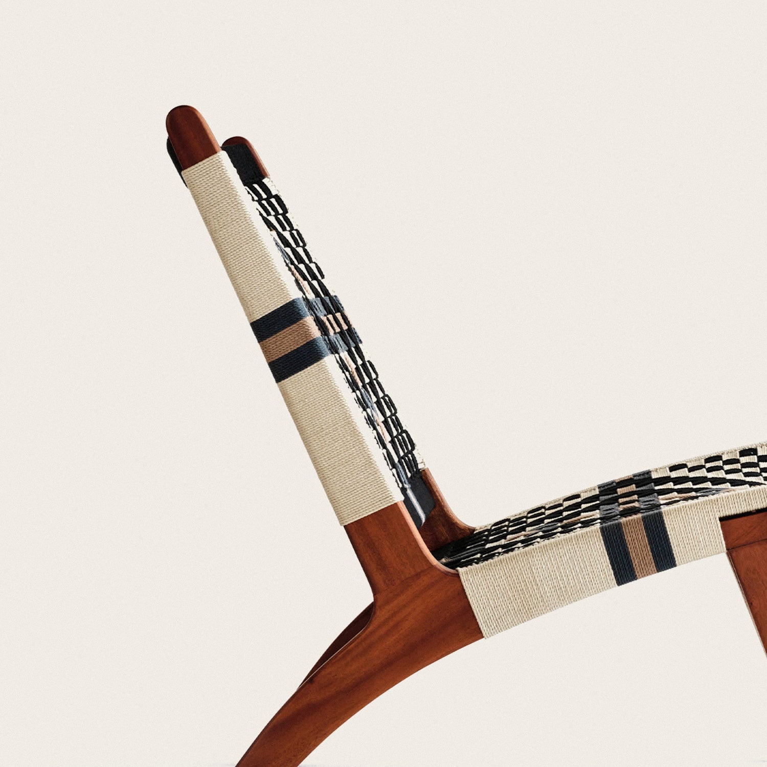 This handwoven pattern is inspired by ornate tilework of Spanish Colonial architecture. With its black and white contrast, the Masaya Lounge is ideal for adding handcrafted accents to modern spaces. Every piece is grown, designed, crafted and handwoven by hand from wood we grow.