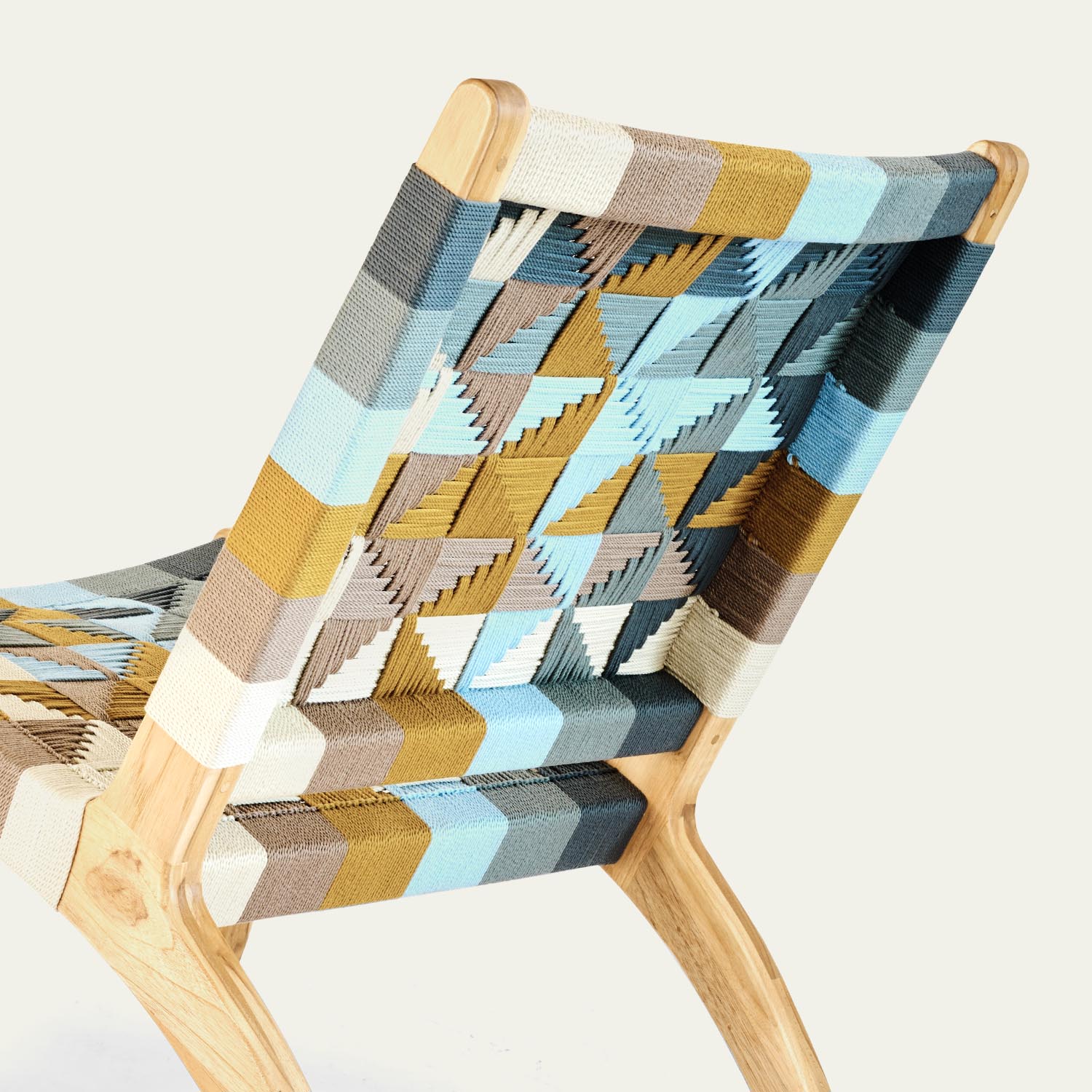 The Masaya Lounge Chair features a woven rope back and seat, inspired by Mid-Century Danish Cord and Japandi designs. Each piece is handmade from solid FSC® Certified teak wood and woven by hand using durable homespun polyester cord.