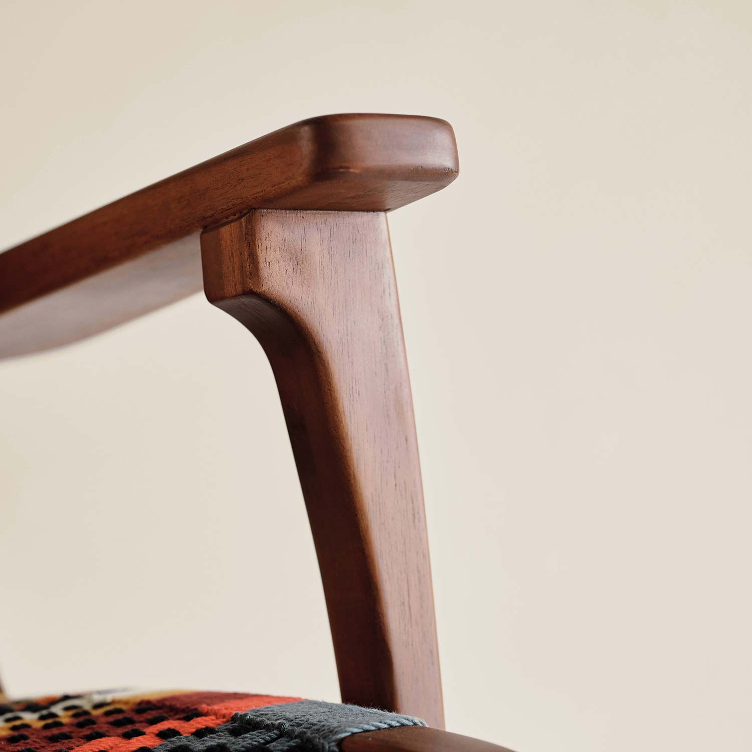 The Masaya Rocking Chair, crafted from FSC®-Certified teak wood, blends classic style and eco-friendly materials for an environmentally conscious yet sophisticated touch.