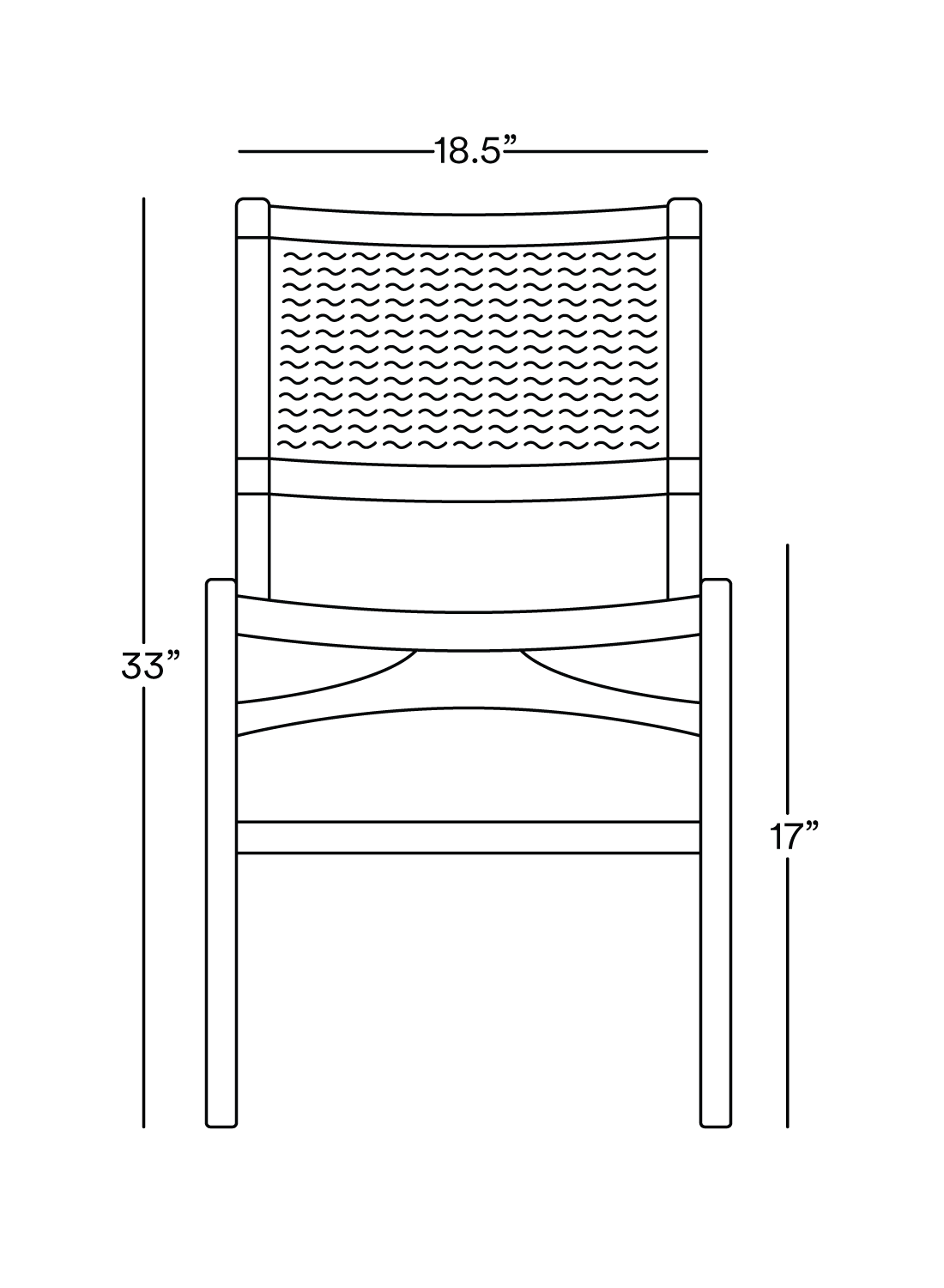 18.5” Width | 23” Depth | 33” Height | 17" Seat Height