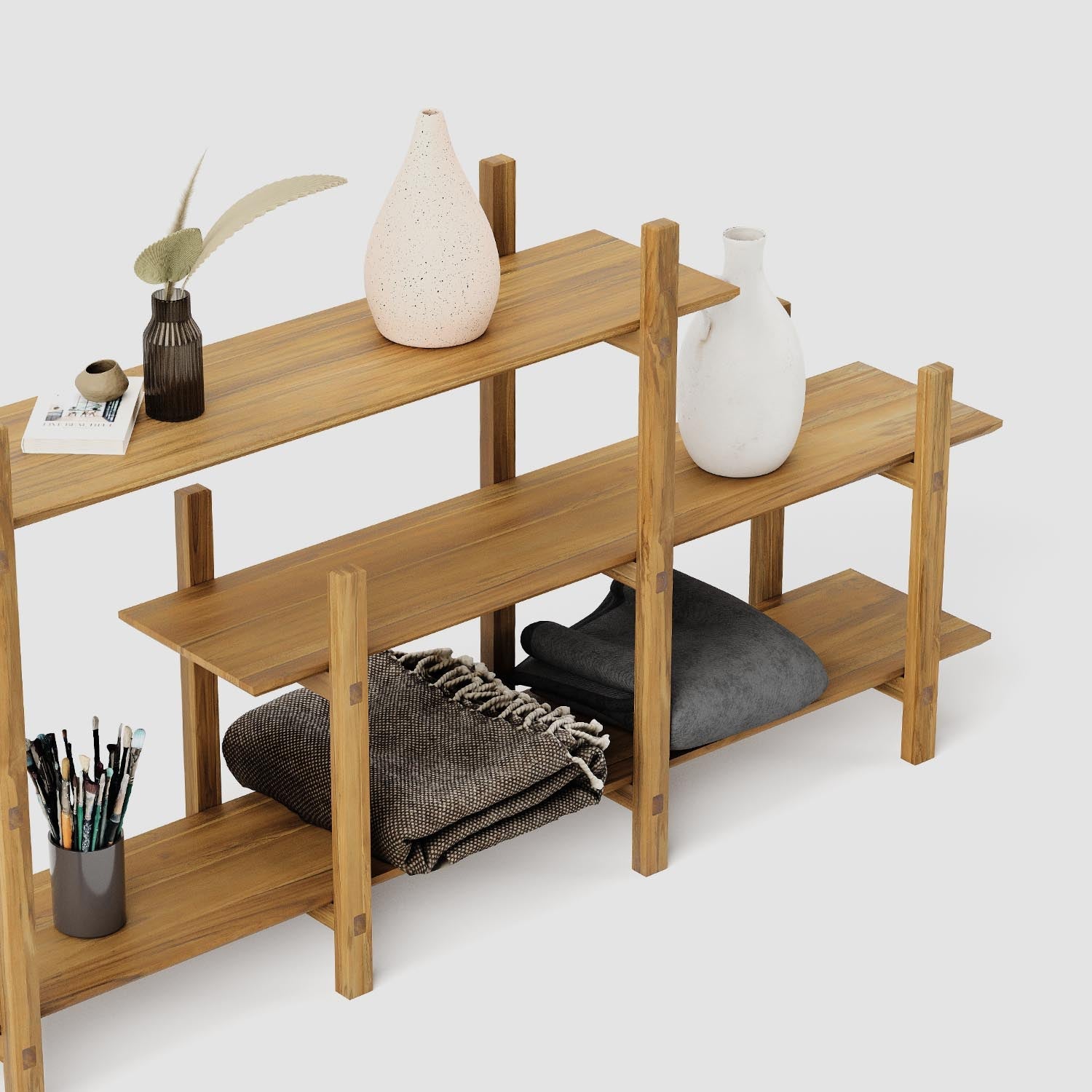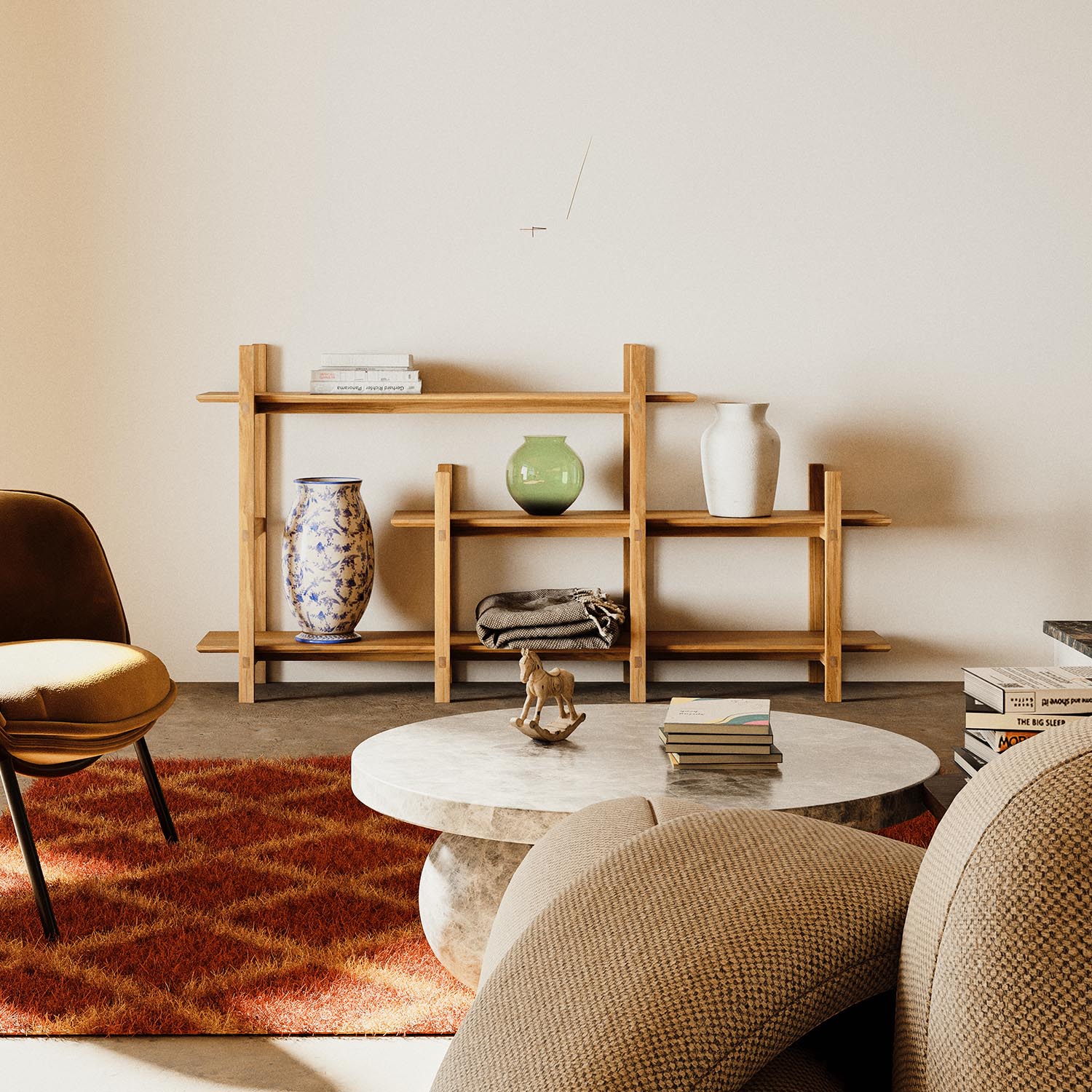The Maderas Console shelf features elegant joinery, lightweight design, and timeless sustainable style. Perfect for electronics, books, or any other items you want to show off.