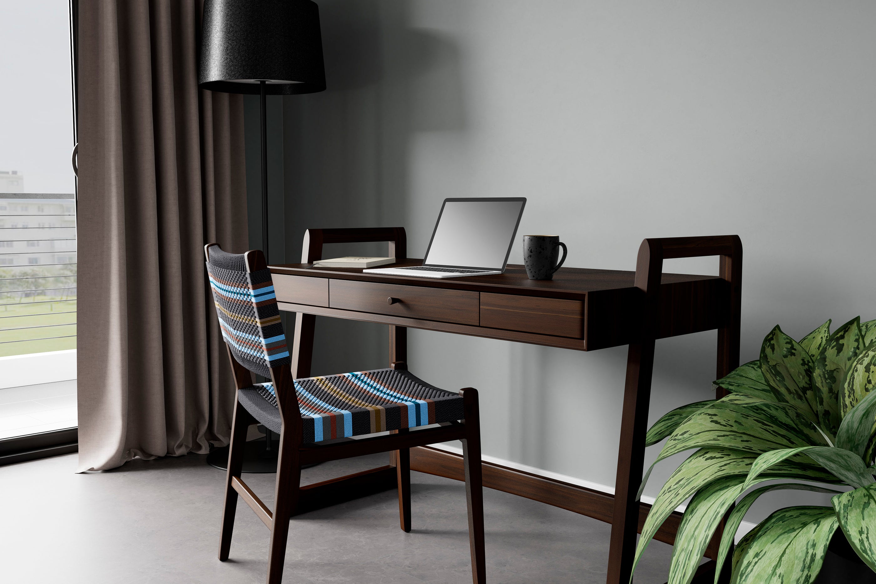 El escritorio Casares combina increíblemente bien con las sillas Chontales y el taburete Izapa y está disponible en cinco exclusivos acabados de madera de Teca.