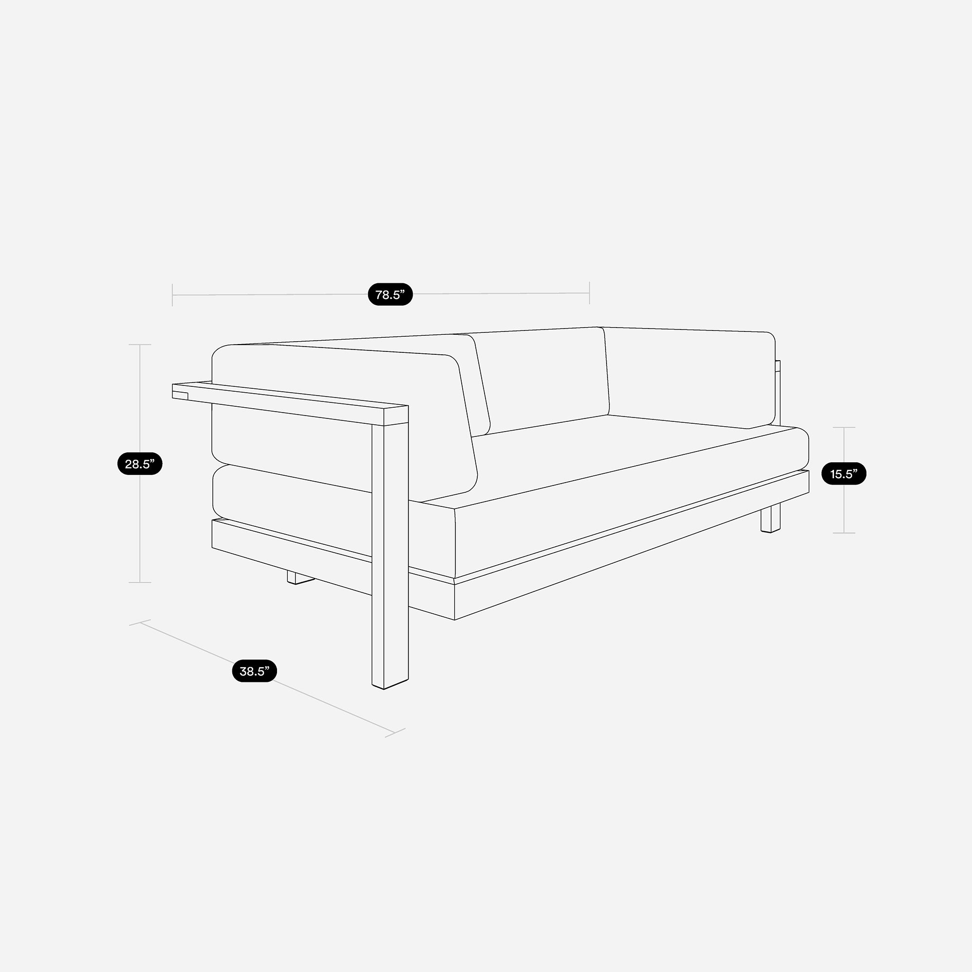 W: 78.5" D: 38.5" H: 28.5"