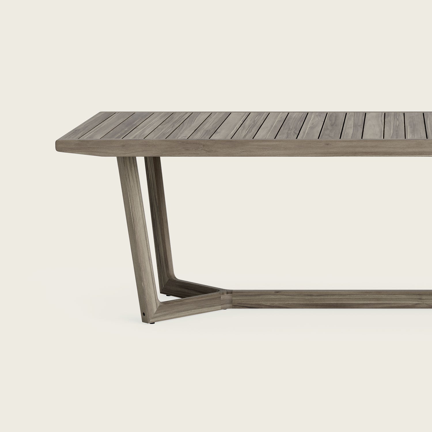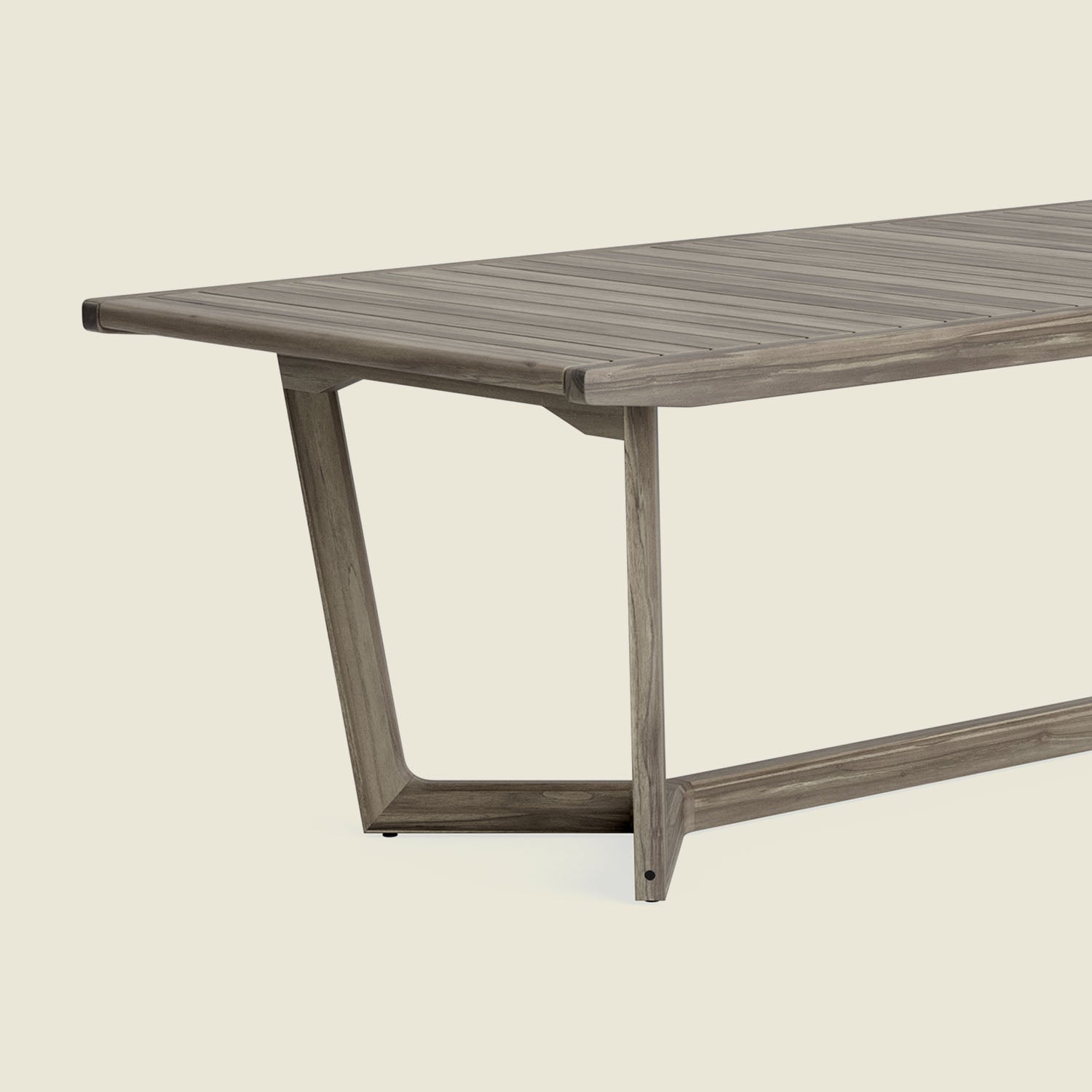 Las mesas de comedor de exterior Casares son un diseño contemporáneo hecho a mano que construimos íntegramente con teca. Increíble atención al detalle y maestría artesanal.