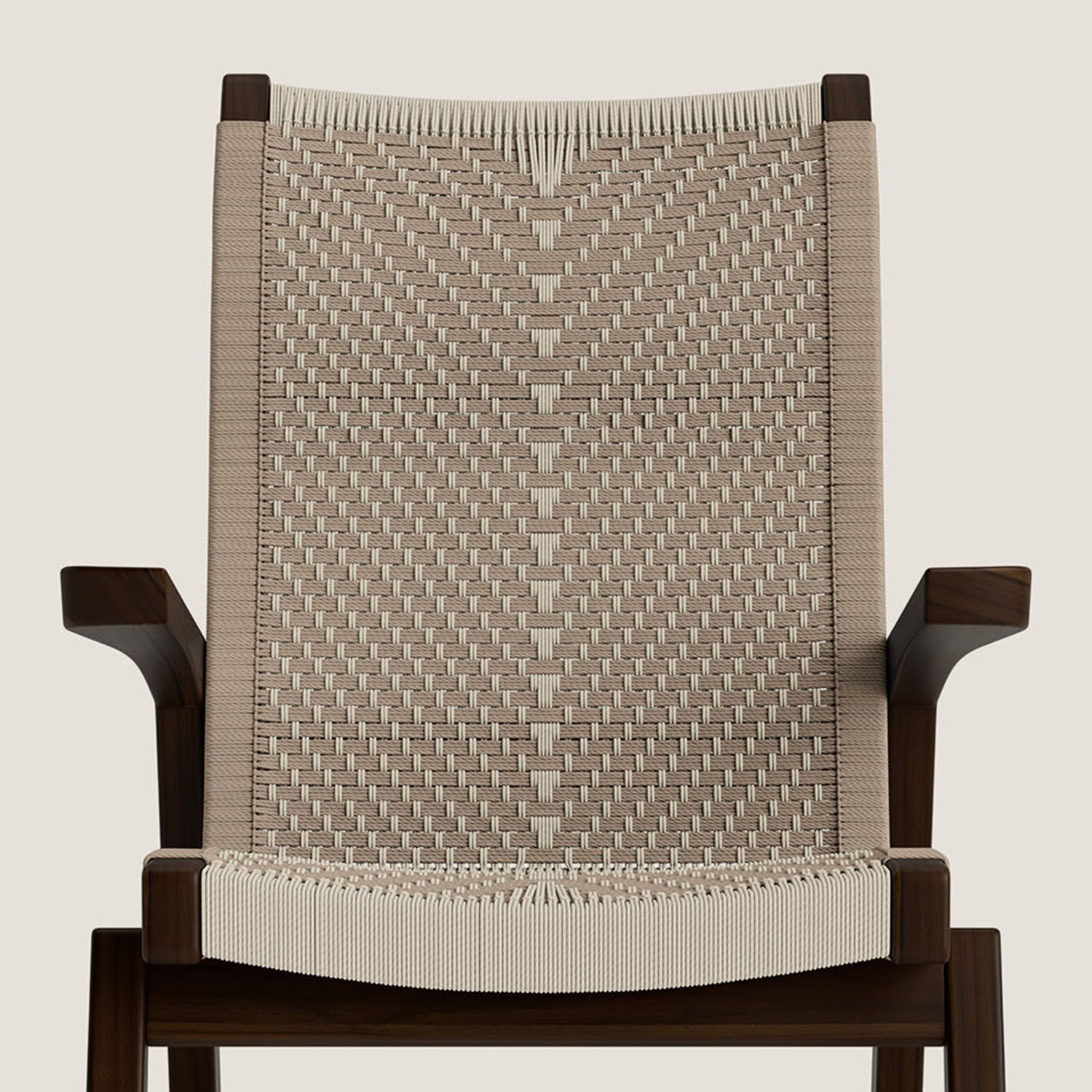La función se une al arte en nuestra mecedora Amador. Esta mecedora hecha a mano presenta un estilo moderno de mediados de siglo y está elaborada con madera de origen sostenible. Su diseño curvo es perfecto para relajarse mientras que su patrón tejido a mano añade color elegante a cualquier habitación. Ideal para madres lactantes.