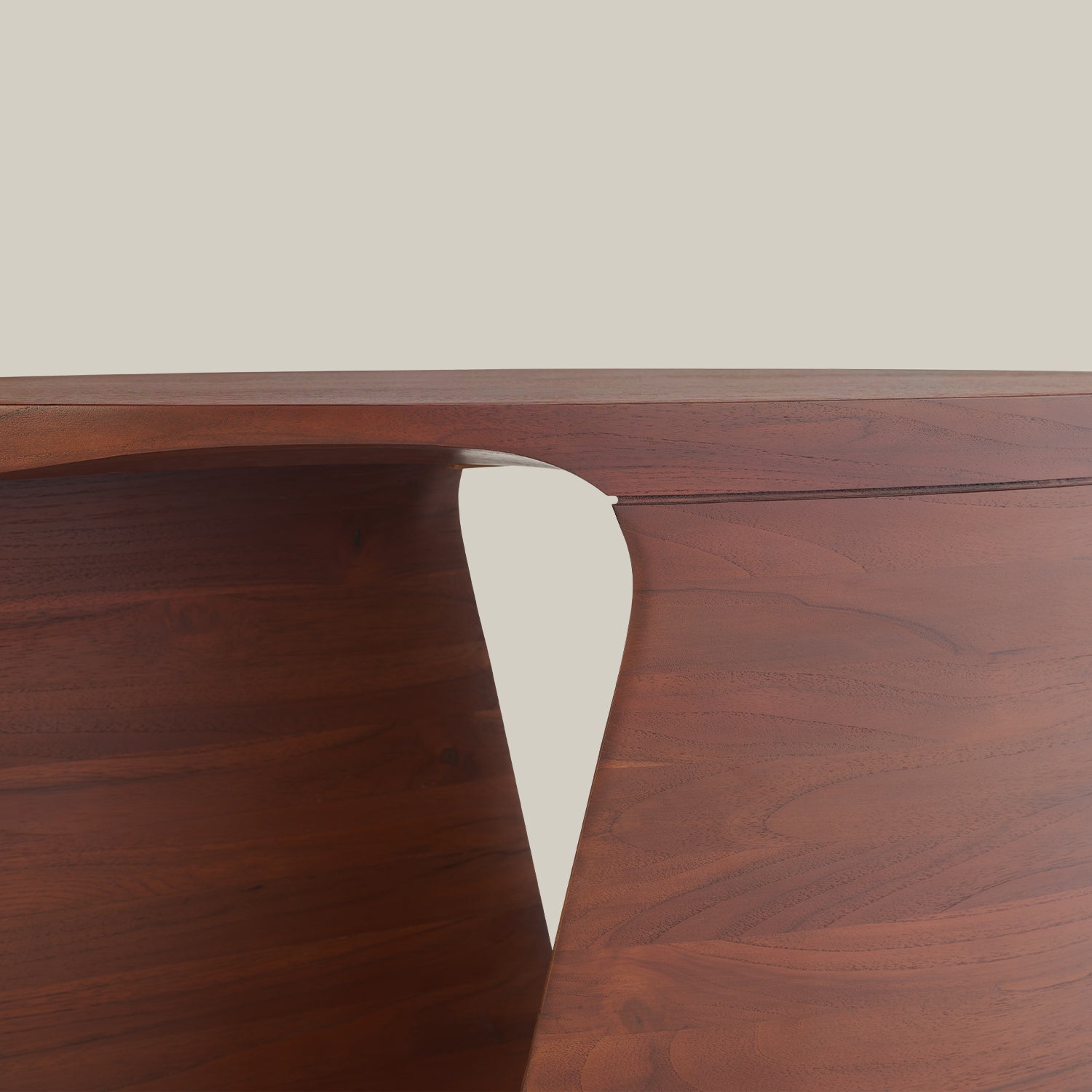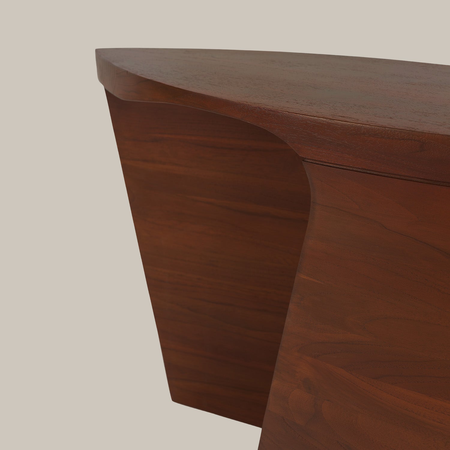 Moderna pero sencilla, la mesa auxiliar Velero se inspira en las líneas suaves y curvas que se encuentran en el casco de un velero. Perfecta como recibidor, mesa decorativa o auxiliar, esta pieza transformará cualquier habitación.